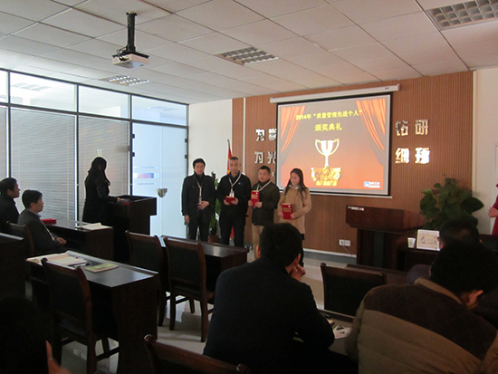 2015年2月11日,南華工業(yè)舉行了年度“學(xué)習(xí)身邊好同事”、“優(yōu)秀先進(jìn)個(gè)人”頒獎(jiǎng)活動(dòng)。公司總經(jīng)理、副總經(jīng)理、保密委員會(huì)主任、管理者代表分別為36位獲獎(jiǎng)員工頒發(fā)證書(shū)并合影留念。